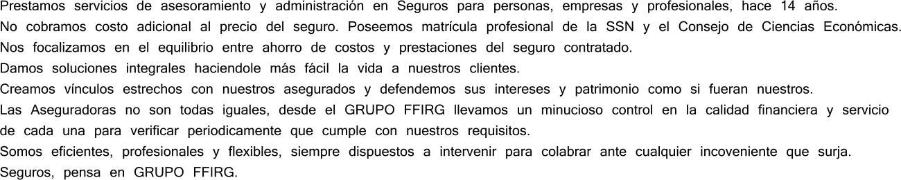 Argentina: Av. Córdoba 1351 CABA Cel: 11.3790.6828 contacto@ffirg.com.ar Uruguay: Av. Luis Alberto de Herrera 1248 (World Trade Center) Cel: 097.500.555 contacto@ffirg.com.uy